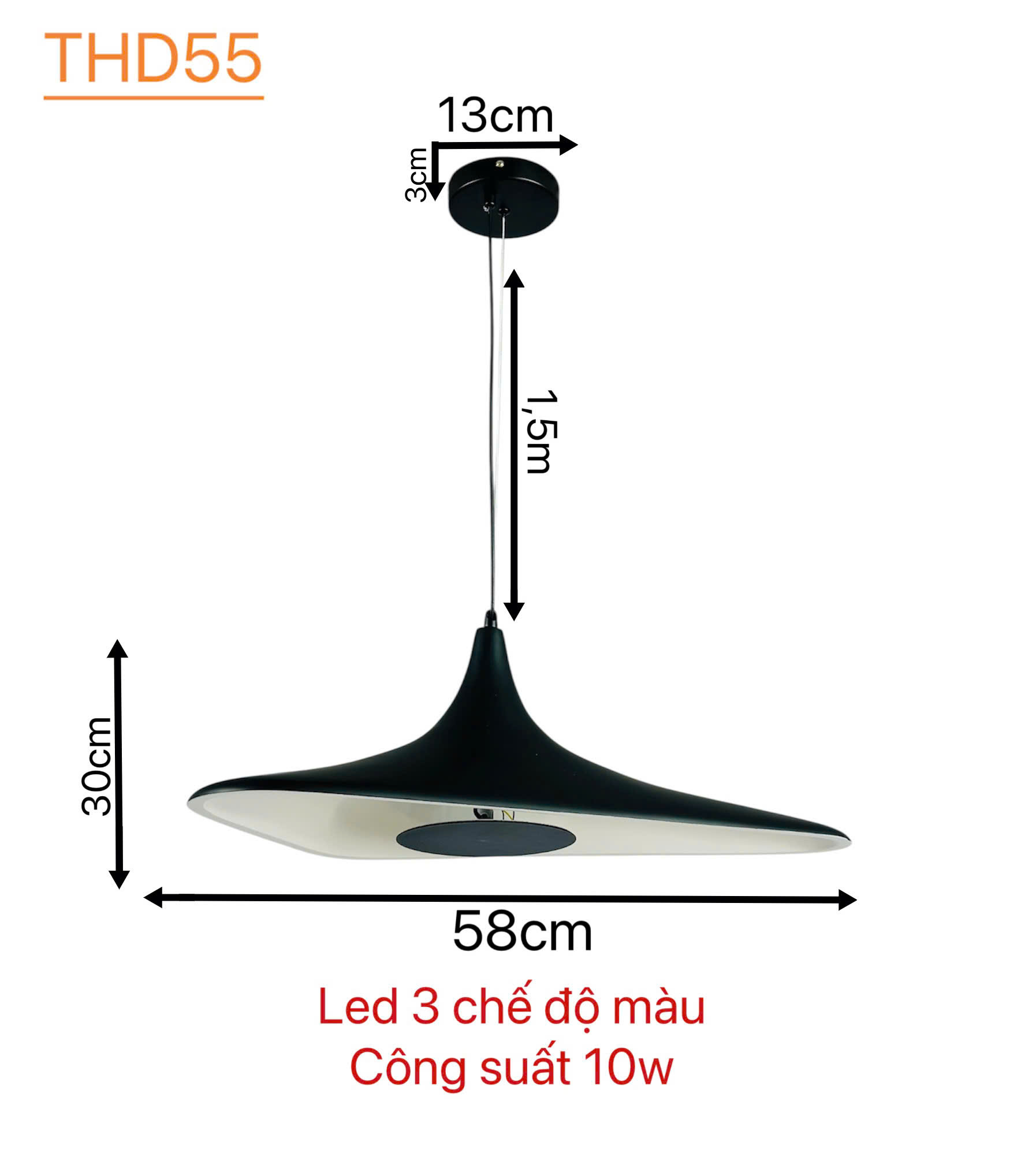 Nằm trong bộ sưu tập đèn thả minimalism năm 2026, Đèn thả THD55 lược bỏ mọi chi tiết rườm rà để tập trung vào những đường nét hình học sắc sảo. Điểm nhấn lớn nhất chính là phần chao rộng được vát mỏng tinh tế, tạo nên hình dáng đĩa bay (UFO) cực kỳ ấn tượng. Đây là lựa chọn lý tưởng cho những ai đang tìm kiếm một mẫu đèn thả đơn có khả năng tạo ra hiệu ứng thị giác mạnh mẽ ngay từ cái nhìn đầu tiên.