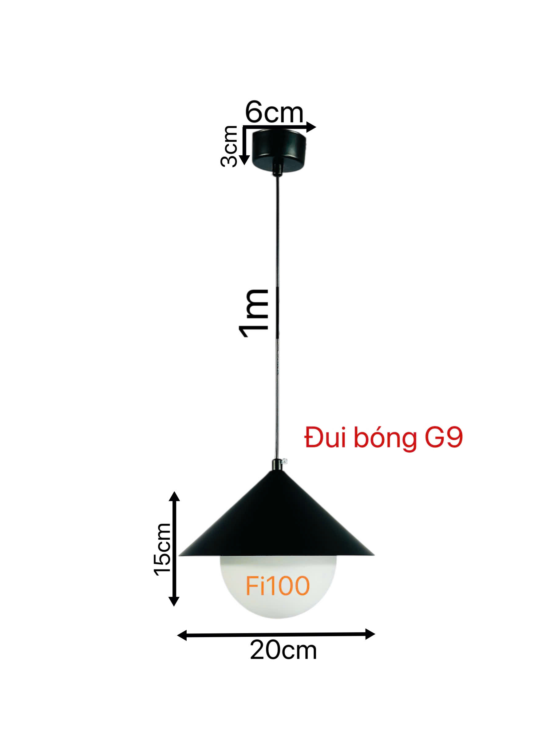 Dây thả: Dài 1m, có thể linh hoạt điều chỉnh độ cao để phù hợp với trần nhà và mục đích sử dụng.