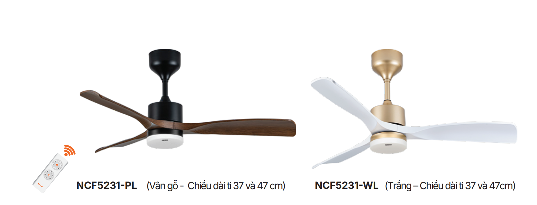 | Màu sắc quạt | Cánh nâu vân gỗ (NCF5231-PL) Tùy chọn thêm: Cánh trắng (NCF5231-WL) |